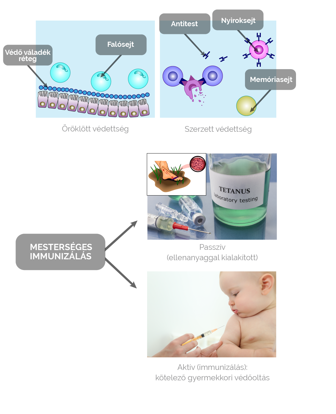 Az idegen anyagokkal szembeni védettség (szakkifejezéssel immunitás) lehet öröklött és szerzett.