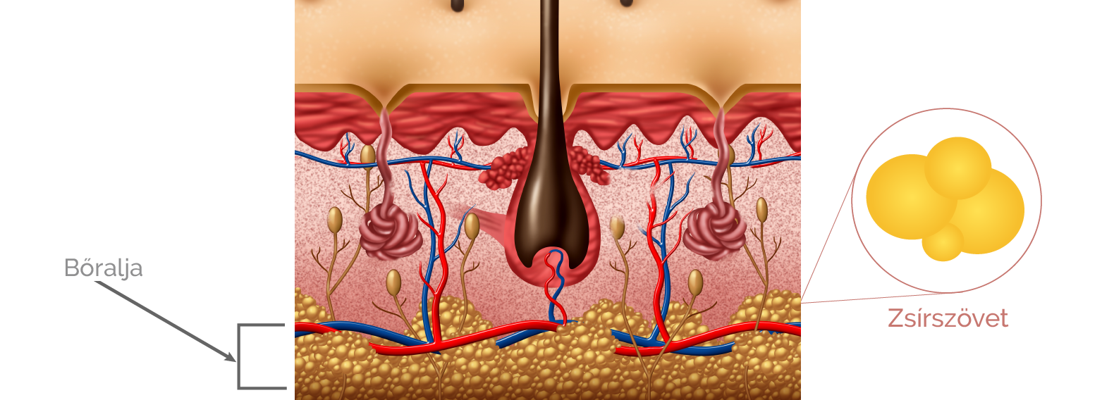 A bőralja kapcsolja a bőrt a test belső szöveteihez. Kötőszöveti rostokat, izomelemeket és több-kevesebb A kötőszövetek egyik típusa, amely főként zsírsejtekből áll. Fő szerepe a mechanikai védelem és sejtekben felhalmozott zsír miatt az energiaraktározásban is fontos.zsírszövetet tartalmaz. A bőraljában található zsírszövet nemcsak tápanyagraktár, hanem fontos szerepe van a hőszigetelésben és a bőrfelszín alatt található szervek, szövetek védelmében is.