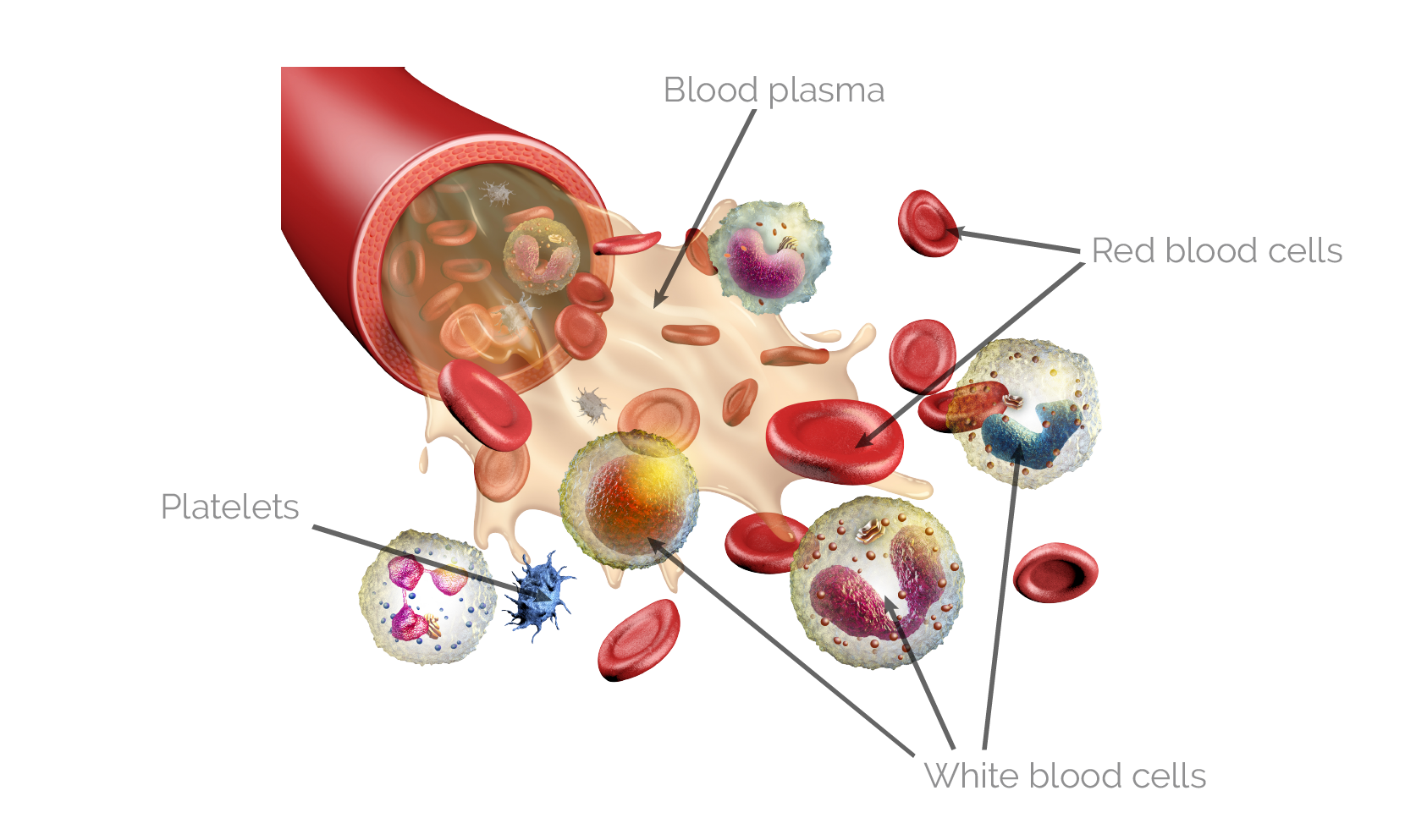 Blood, the bodily fluid circulating in the blood vessel network, is a type of connective tissue. Its extracellular matrix is the blood plasma. Its cellular elements are the red blood cells, white blood cells and platelets. The cellular elements of blood come from the red bone marrow. Blood accounts for approximately 8% of one’s body weight, its volume is around 5 dm3 on average. Blood plasma makes up 55% of the blood volume, while 45% is made up of cellular elements.