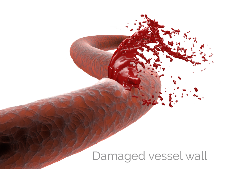 Coagulation happens when the blood vessel wall becomes damaged. The normally fluid plasma changes from liquid to gel at the damaged area and forms a clot together with the cellular elements of blood, to prevent blood loss. As a first measure, the damaged endothelium (inner lining of the vessel) produces chemicals that mediate the adhesion of platelets to the damaged area. Then the platelets release chemicals that activate the plasma proteins taking part in coagulation. A multi-step reaction in the plasma results in one of the plasma proteins becoming water-insoluble, forming a cross-linked mesh. The cellular elements of blood get caught in the mesh, thus forming a clot. Underneath this clot the endothelium is able to regenerate. After this the clot gets broken down when np longer needed.